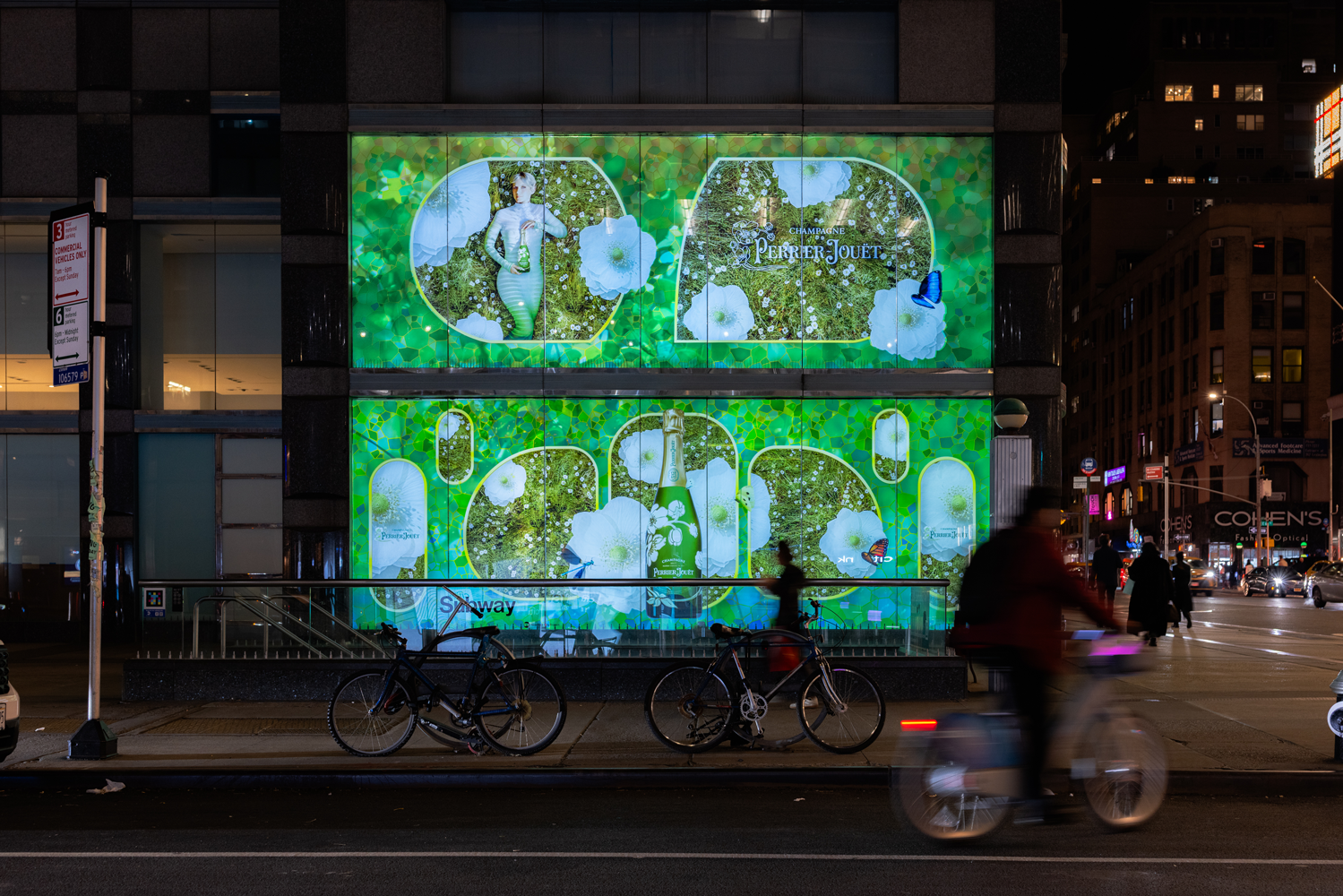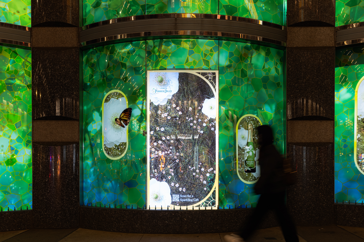 Inspired by Perrier-Jouët’s Art Nouveau heritage, the installation transforms flagship windows in New York City and Los Angeles into luminous greenhouses. These intricate displays feature organic digital elements and floral motifs that evoke the feeling of glowing stained glass, creating a poetic celebration of nature across both coasts.